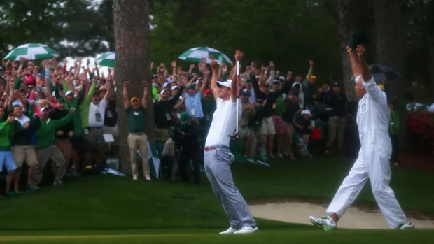 Em um dos Masters mais memoráveis de todos os tempos, Rory McIlroy perdeu uma vantagem de quatro chutes nas costas nove, recuperou a liderança, perdeu novamente e acabou em um playoff com o inglês Justin Rose. O norte-irlandês venceu no primeiro buraco extra com um gap wedge de dentro de um metro para birdie e comemorou cobrindo a cabeça, caindo de joelhos e colocando a testa no green enquanto seu peito arfava de emoção.