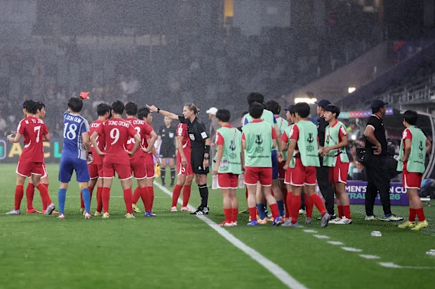A partida da Copa Asiática do grupo B da China e da Coreia do Norte, no CommBank Stadium, foi marcada por polêmica depois que este último se recusou a jogar em um determinado momento devido a uma decisão do árbitro.