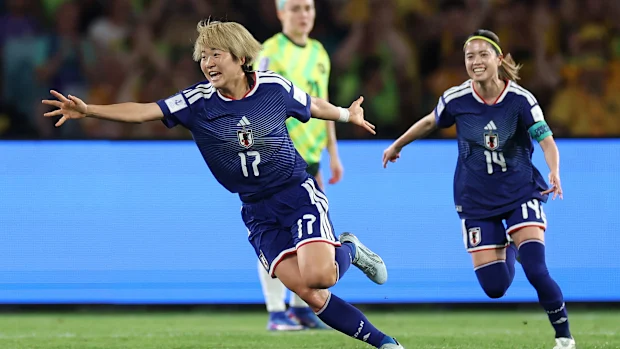Maika Hamano, do Japão, comemora o gol.