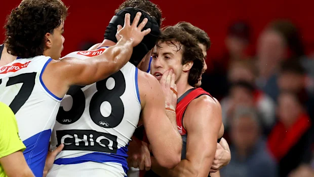 Xerri concedeu penalidades consecutivas de 50 metros no segundo quarto e, durante a investida dos Bombers no terreno, foi esbarrado em Archie Roberts por Andrew McGrath. Roberts levantou as mãos em protesto pela queda de Xerri no chão.