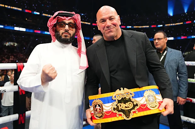 Turki Al-Sheikh posa com o presidente do UFC, Dana White.