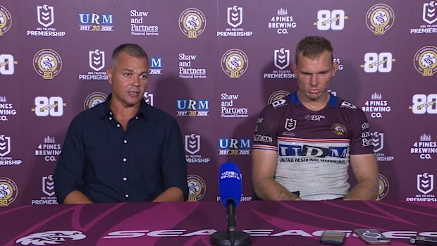 Anthony Seibold e Tom Trbojevic falam aos repórteres.