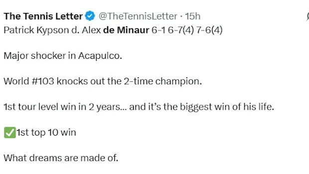 A vitória de Kypson foi a primeira no ATP Tour desde Indian Wells em 2024.
