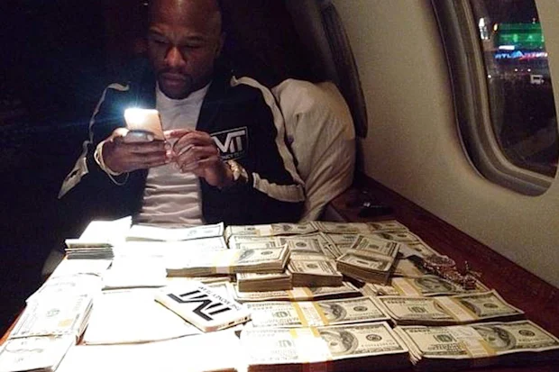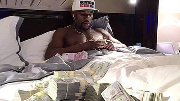 Durante esse período, Mayweather postou fotos suas em um jato particular cercado por pilhas de dinheiro e legendas como: “Só estou cuidando da minha vida”.