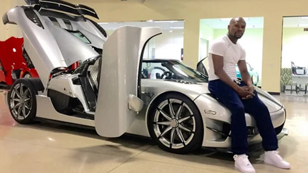 Mayweather posa com um carro de luxo.