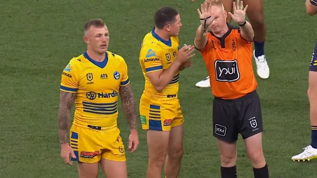 As coisas foram de mal a pior para os Eels quando o extremo Bailey Simonsson foi expulso por uma falta profissional, deixando a sua equipa reduzida a 12 jogadores pela segunda vez.