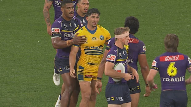 Will Penisini esteve dolorosamente perto de plantar a bola no próximo tackle, mas foi interrompido por alguma defesa disposta do Storm e perdeu o controle da bola.